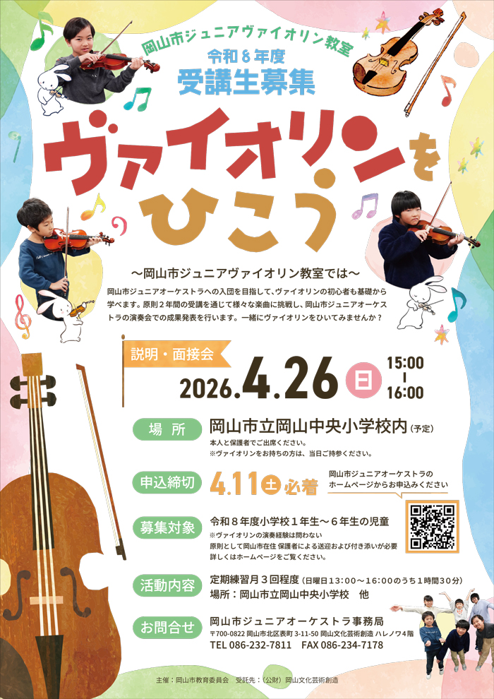 令和8年度 岡山市ジュニアヴァイオリン教室 受講生募集!